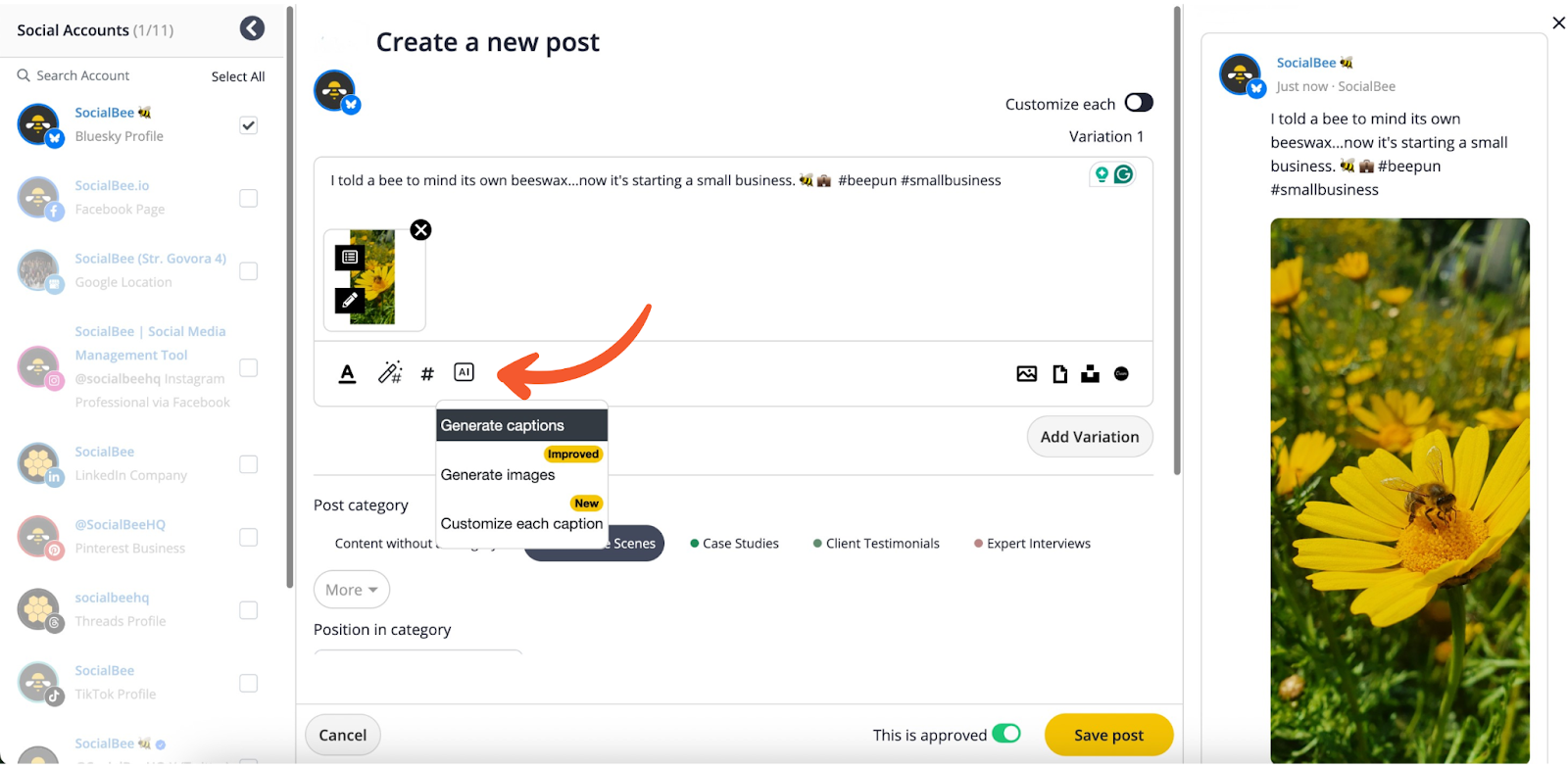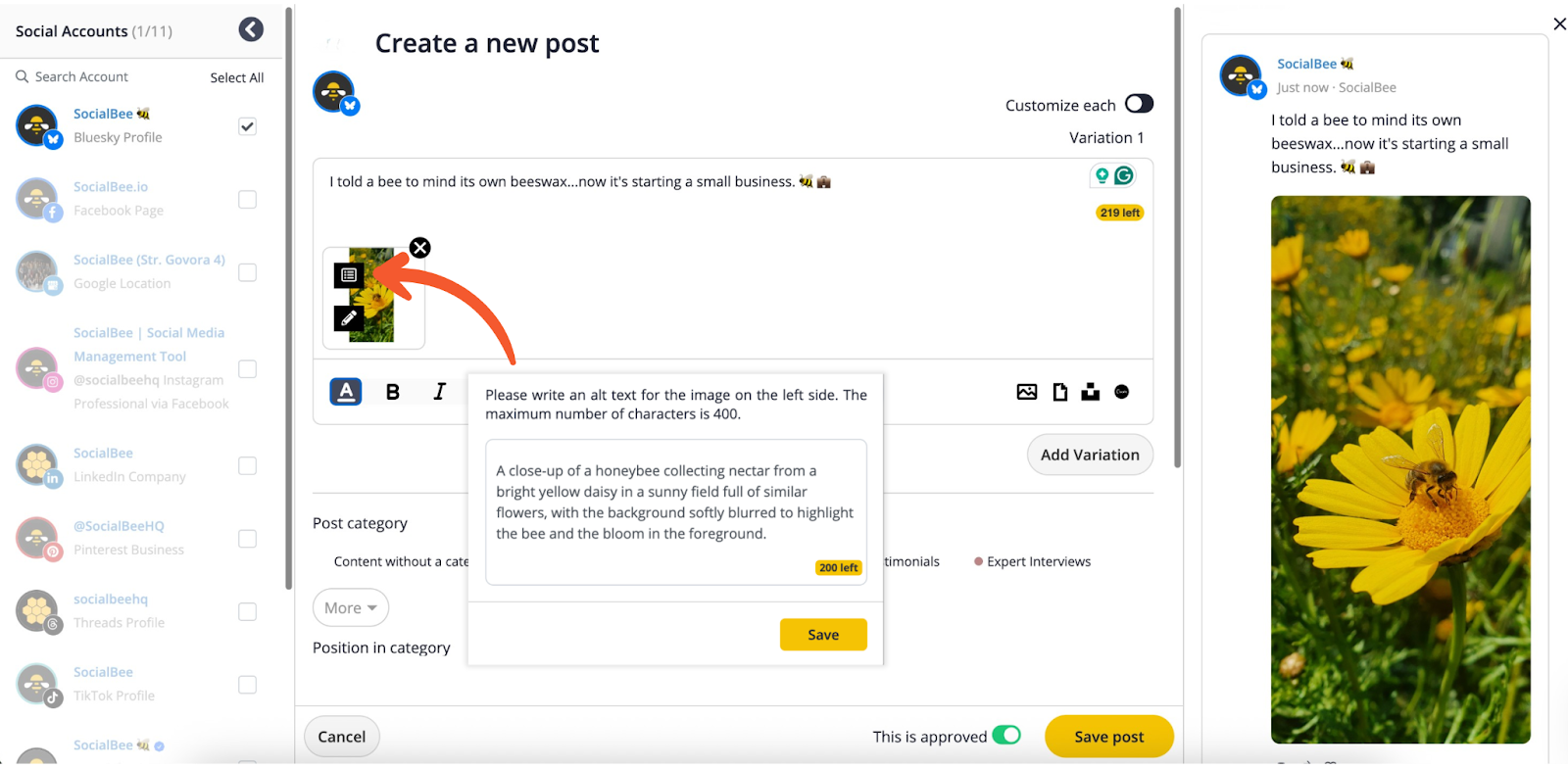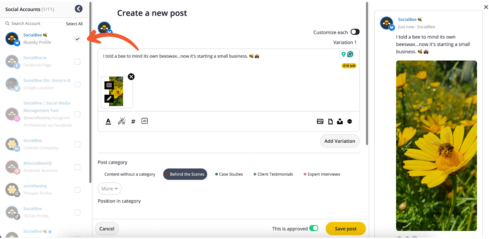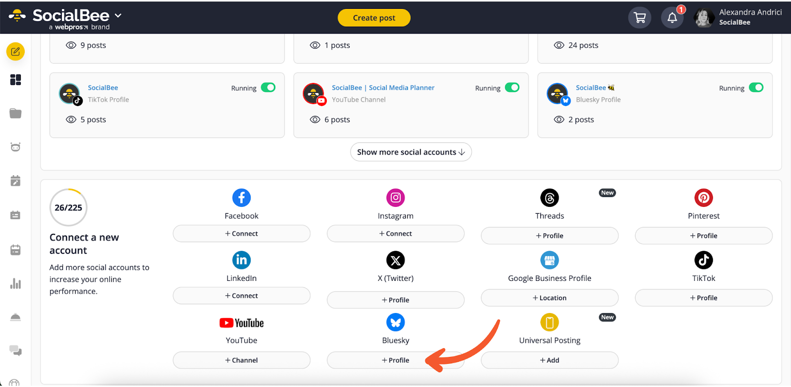 After connecting your Bluesky account to SocialBee, you’re ready to start creating and scheduling your posts.