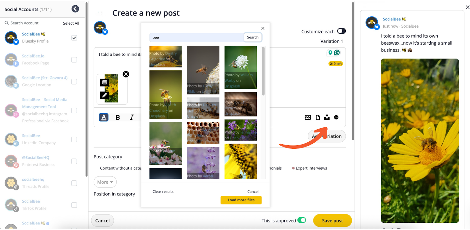 | Note: At the moment, you can’t post GIFs or videos on Bluesky from SocialBee. |