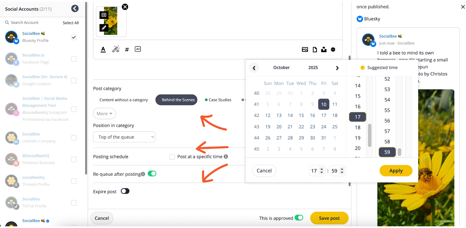 Here’s how to schedule Bluesky posts from SocialBee: