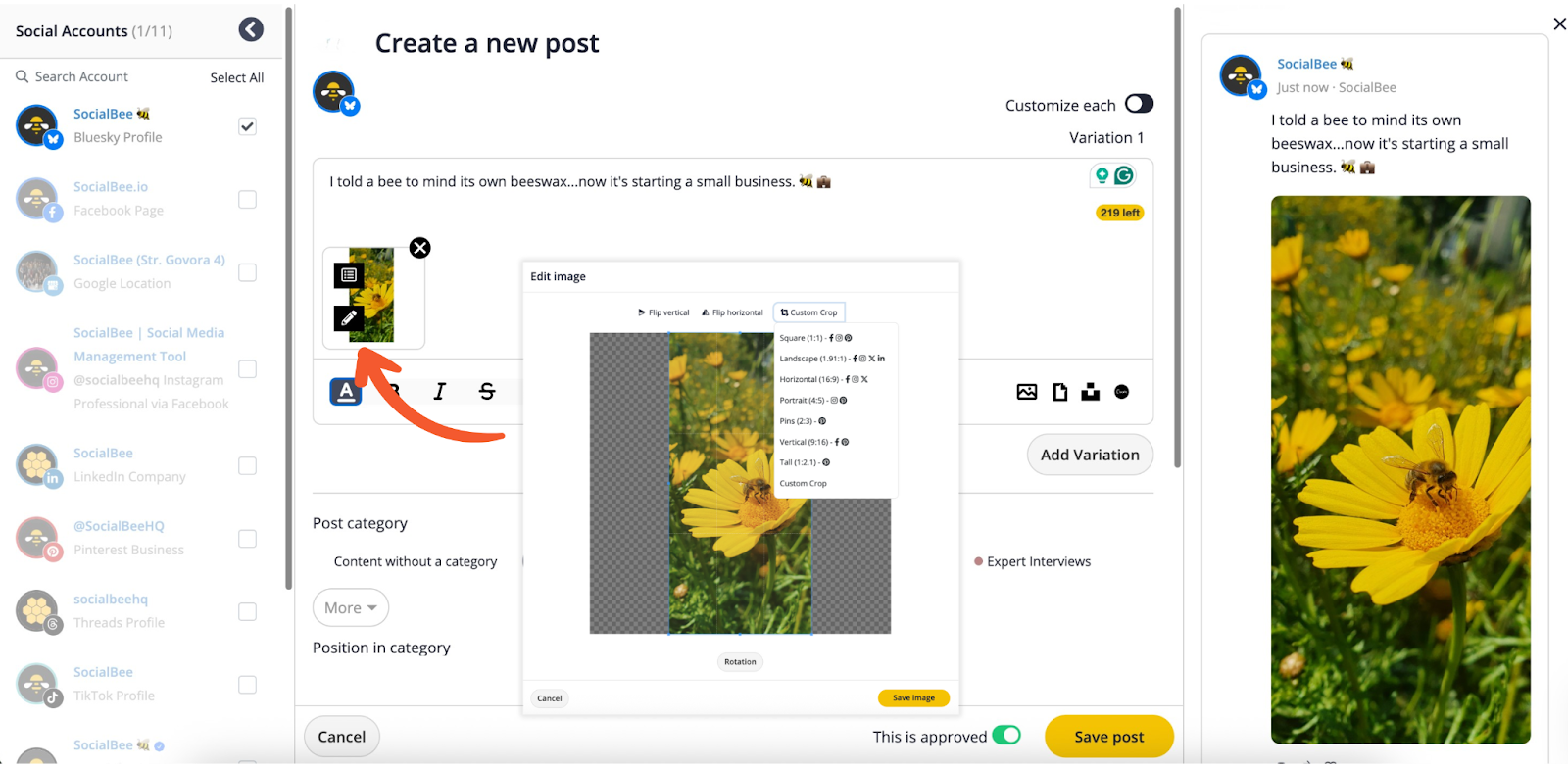 - View a real-time preview on the right side of the screen and edit until your post looks perfect.
