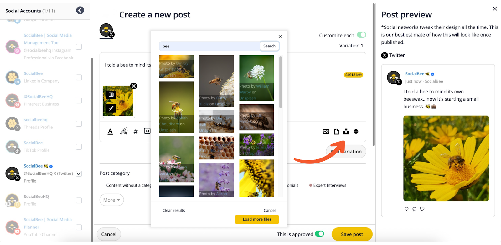 SocialBee makes it easy to create, schedule, and publish posts on X (formerly Twitter) from one content calendar. You can post text, images, videos, GIFs, and links directly from your dashboard, all while collaborating with your team, interacting with your audience, and keeping track of your Twitter analytics.