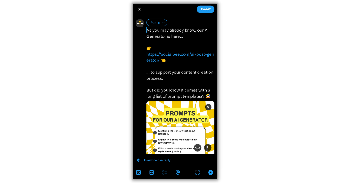 With SocialBee, you can start scheduling tweets in almost every format supported by X.