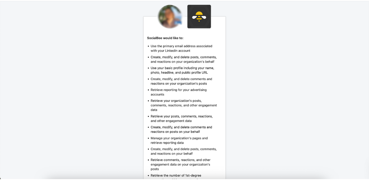 - Grant SocialBee the required permissions so it can publish and manage content on your behalf.