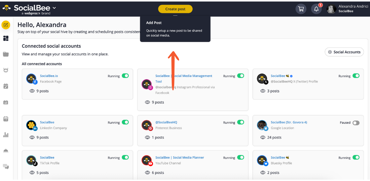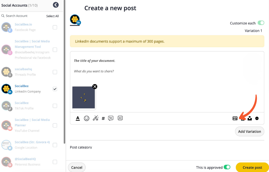 - Click “Create post.” SocialBee will publish your LinkedIn carousel at the time you selected.