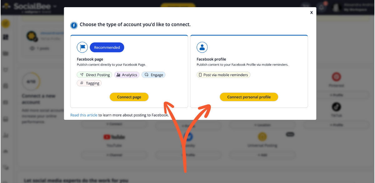 - If connecting a Page, choose the Business(es) you want SocialBee to access.